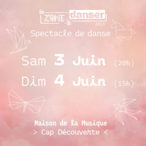 Notre spectacle annuel se déroulera le samedi 3 juin 20h et dimanche 4 juin 15h à la maison de la musique à Cap Découverte.